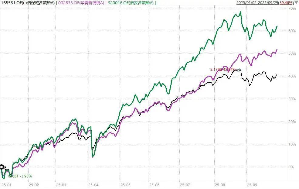 但硬币的反面就是,基金确实也容易错过“高估”阶段的涨幅,今年中信保诚多策略的业绩跑输诺安多策略、华夏新锦绣。