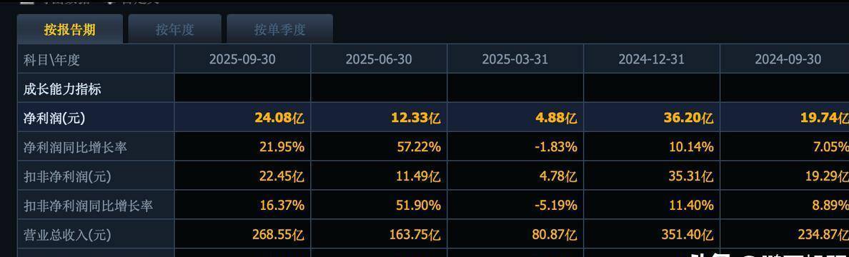 鹏鼎控股是全球最大的PCB生产企业,在深圳设有总部。 2025年前三季度,公司营收达到268.55亿元,同比增长14%,净利润为24.08亿元,同比增长21.95%。 但从单季度数据看,第三季度的业绩增速出现了明显下滑。