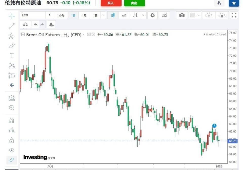 原油价格近几周暴跌至每桶约60美元。周一大概率也将在60美元左右1美元波动。