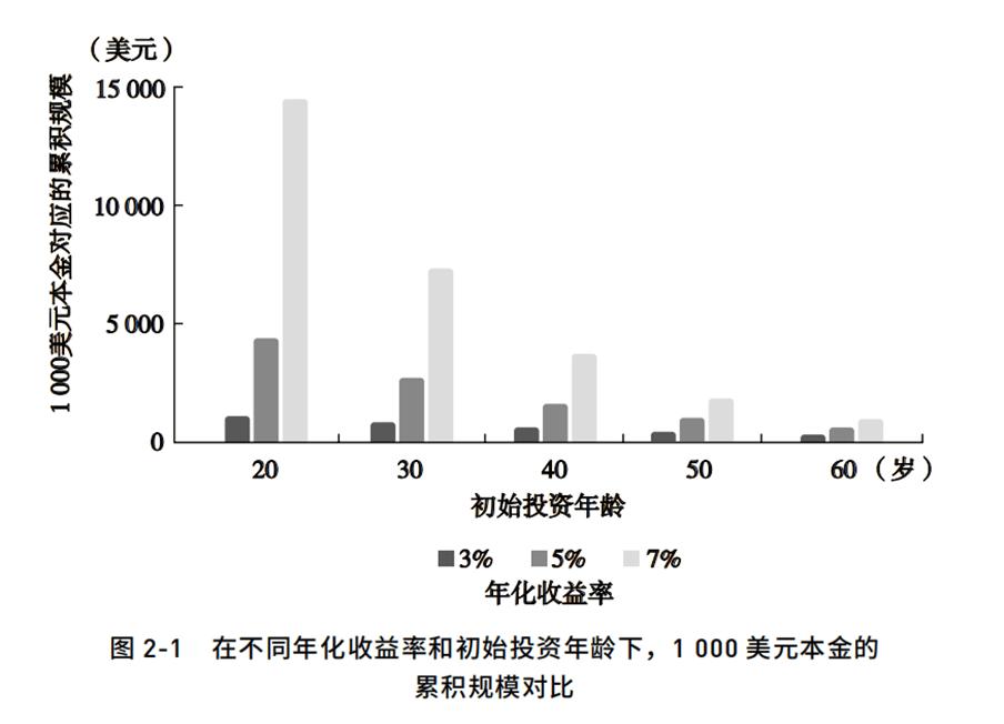 看看基于不同的投资收益率和初始投资年龄,1000美元投资在你停止工作时能累积到怎样的规模。储蓄可以被视作一种“交换”行为,即节省下现在的一些无关紧要的开销,来换取自己和家人在未来能够更加享受的事物。通过良好的储蓄习惯和稳妥的投资实践,在未来的岁月里,你将拥有更多“首选”的机会。
