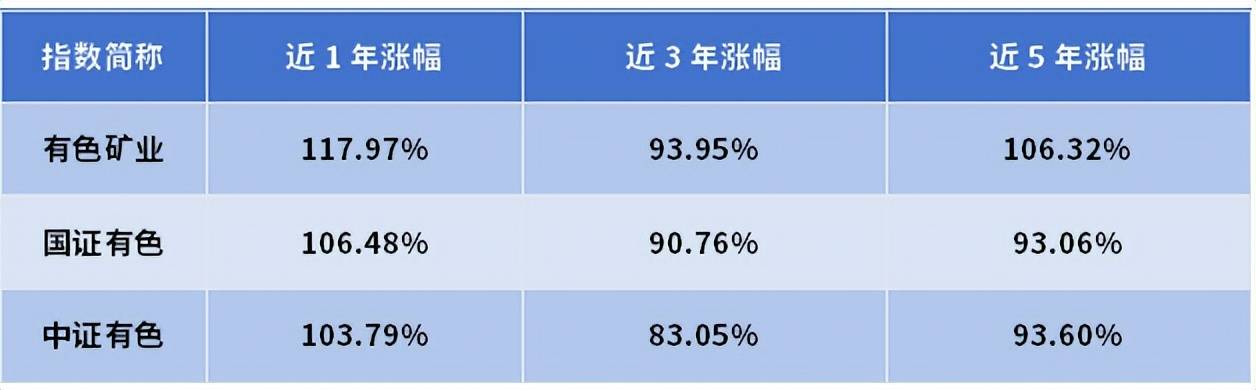 从历史数据看,得益于选股方面的优势,中证有色金属矿业主题指数的表现要显著优于中证有色、国证有色等同类型指数,各时间维度下均有一定超额收益。