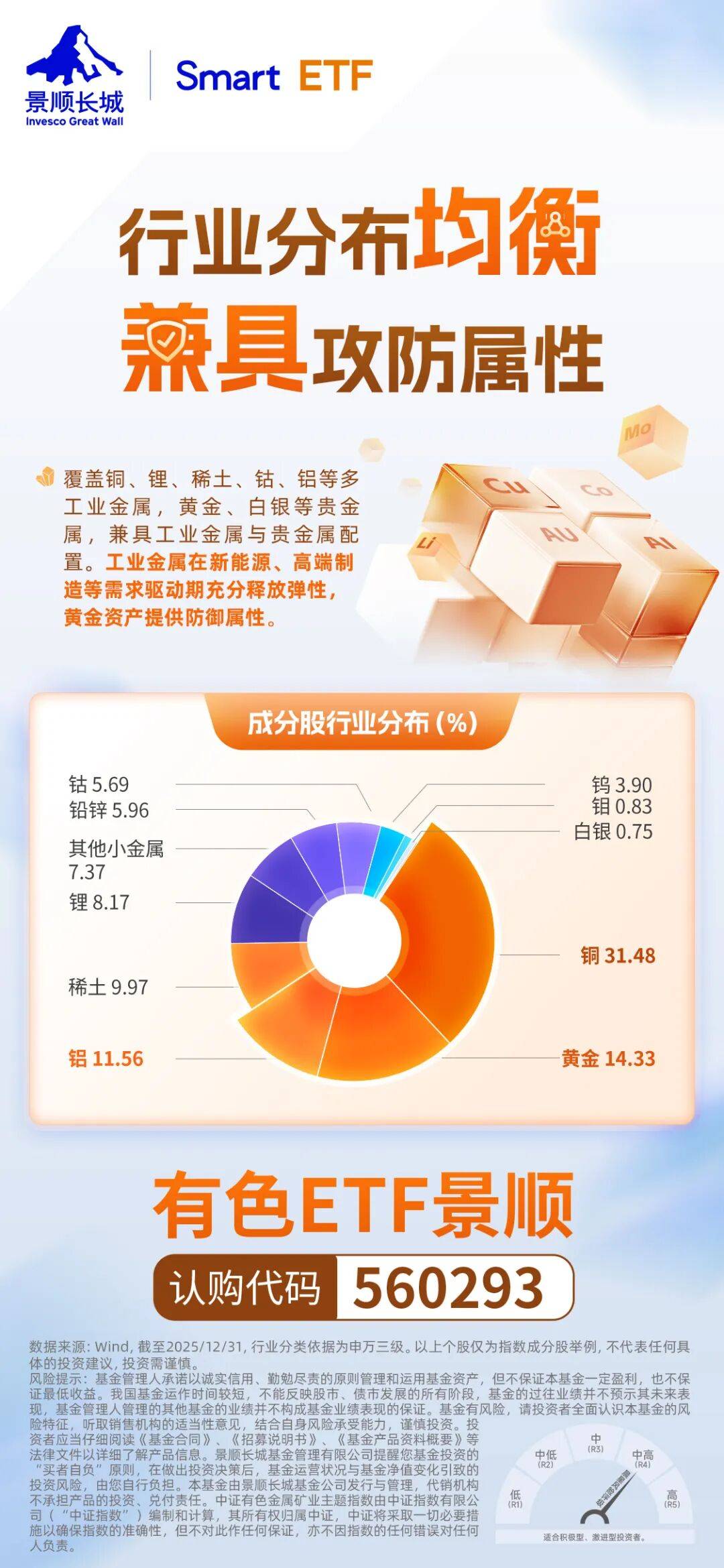 想要参与有色金属行情,正在发行的有色ETF景顺(代码:560293)是代表性工具之一,该产品跟踪的中证有色金属矿业主题指数,是含量高且较为纯粹的有色金属投资工具。