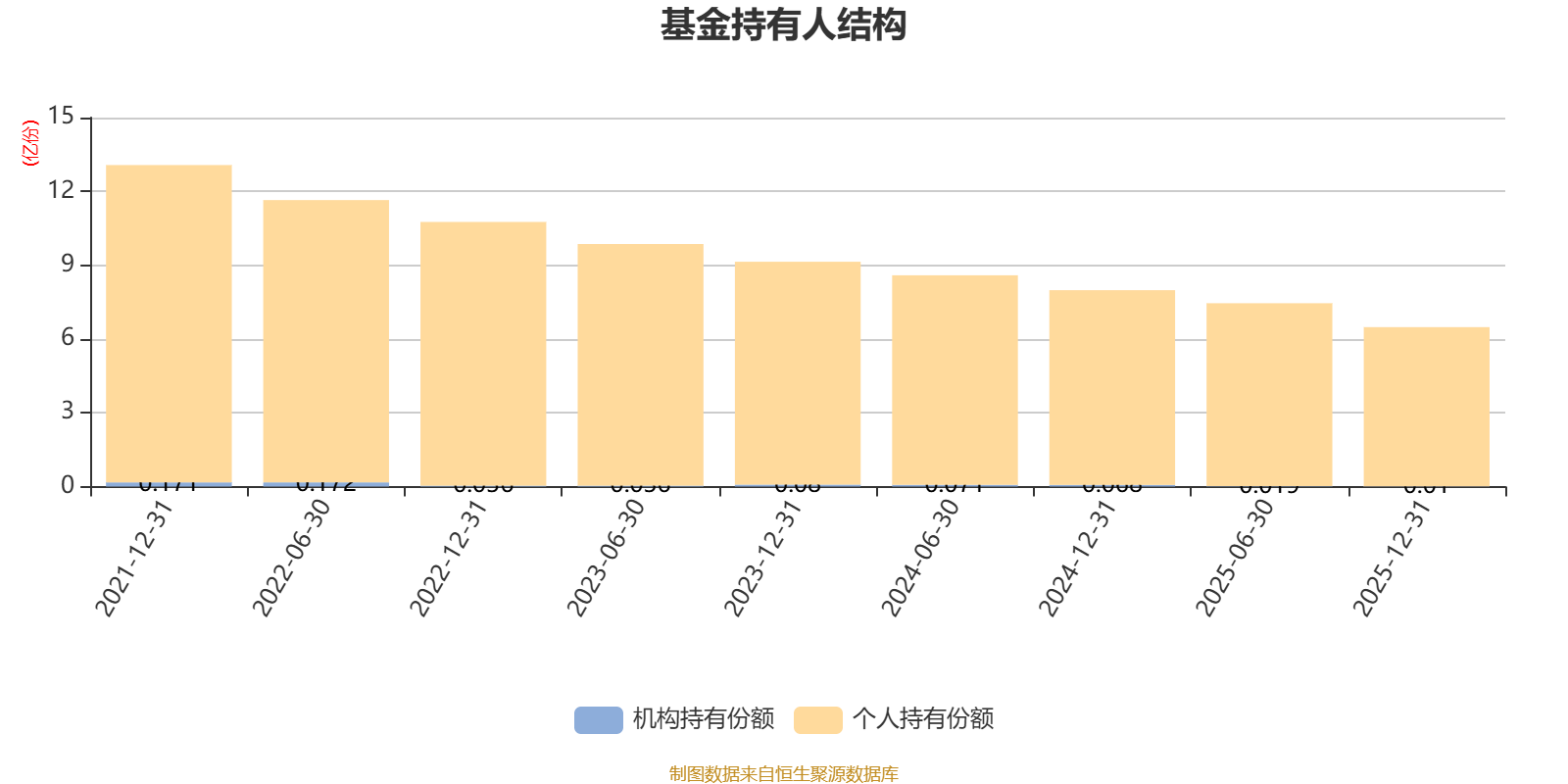 截至2025年12月31日,基金持有人共计8913户,合计持有6.48亿份。其中管理人员工持有1.46份,机构持有份额占比0.15%,个人投资者占比99.85%。
