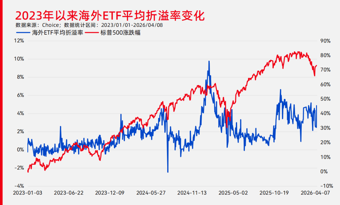 2023年下半年以来,海外ETF就长期维持高溢价状态,当美股有阶段性强势表现,场内ETF溢价率也会随之抬高。