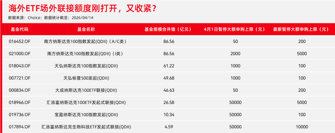 毕竟,之前像嘉实和易方达旗下的场外纳斯达克100联接基金分别在2月初、3月中旬暂停申购;广发、华安、摩根旗下管理的场外纳指联接基金长期每天限购10元。