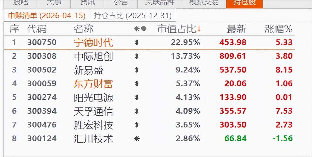 但相对来说,每次高点或者高点到低点的PE估值波动还是太大了,今天很多人都在拿创业板50跟纳斯达克去比较,创业板也有自己的七姐妹了,新能源的宁德时代+阳光电源占比权重27.08%,AI硬件的中际旭创+新易盛+天孚通信+胜宏科技占比权重30.71%,金融科技的东方财富占比权重5.37%,合计占比权重超63%,现在创业板就是被这几个权重股绑架了。
